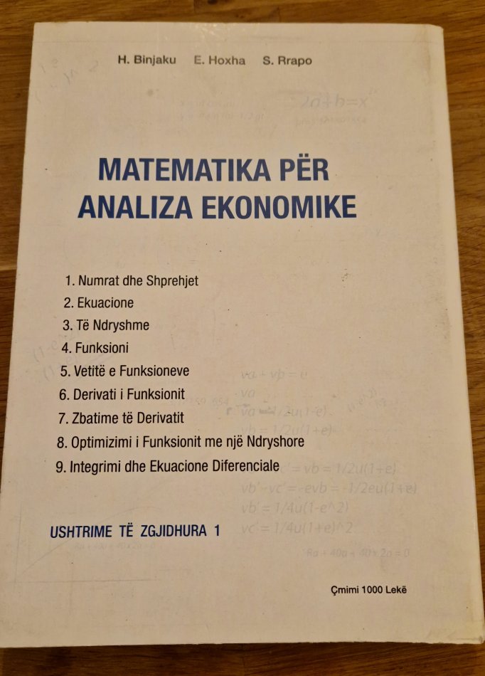 Tirane, shes Shitet libër : “Matematika për Analiza Ekonomike – Ushtrime të Zgjidhura 1”