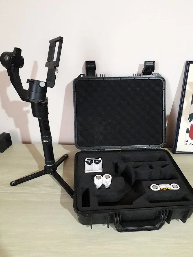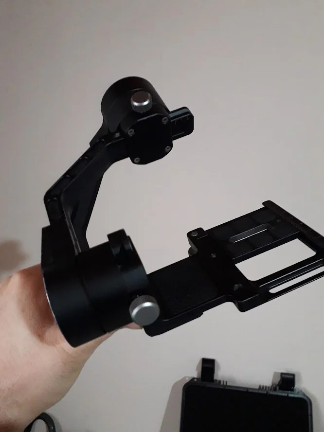 Gjithashtu shitet edhe gimbali (stabilizatori) i cili funksionon perfekt, ideal për xhirime të qëndrueshme dhe profesionale. Pajisja vjen me valixhen e vet të fortë, me hapsira të dedikuara për çdo pjesë, si dhe disa aksesorë shtesë.