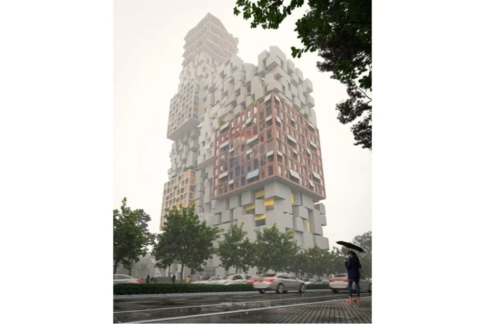 I gjithë projekti është zhvilluar duke përdorur shtatë lloje të ndryshme kubesh, secili prej shtatë katesh, një lartësi mesatare karakteristike për shumicën e ndërtesave në Tiranë.