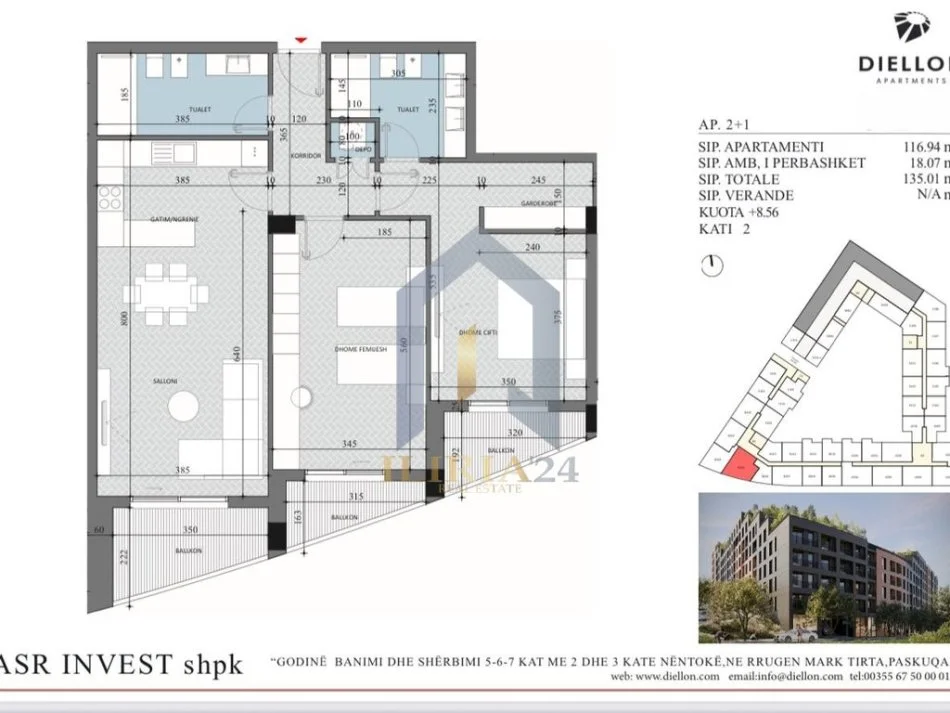 • Sipërfaqe Apartamenti: 116.94 m²