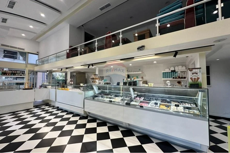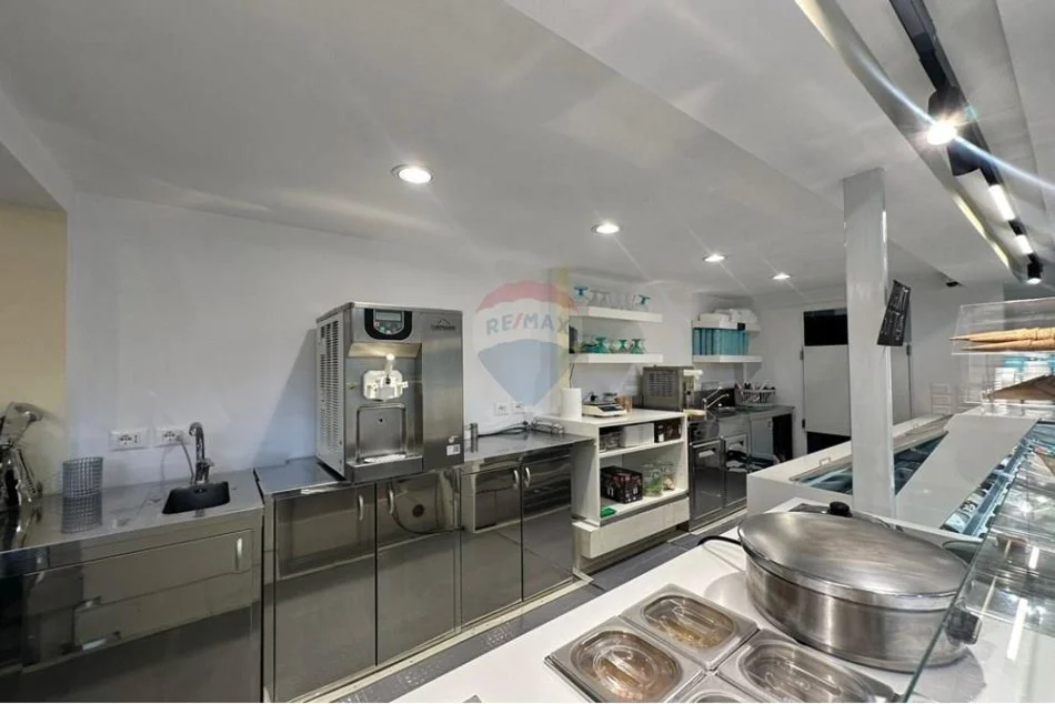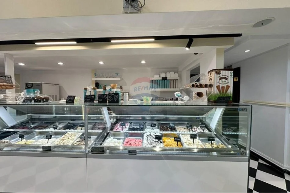 🔹 Ambient i mobiluar dhe i pajisur plotësisht (banak shërbimi, makineri për akullore artizanale, frigoriferë, ekspres kafeje, tavolina, karrige, snack, pije freskuese et.).
