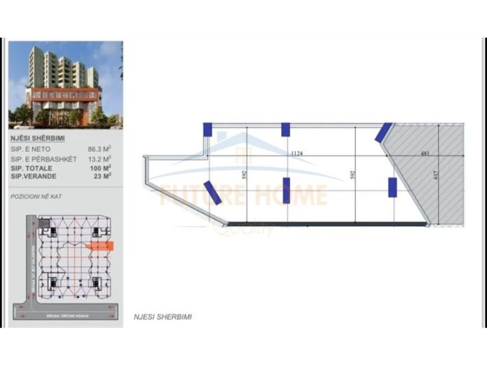 • Sipërfaqe Bruto: 100m2