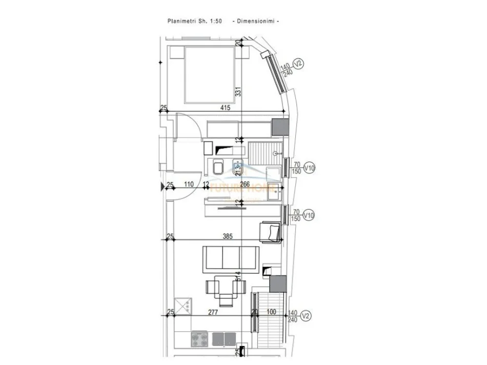 • Siperfaqja neto e apartamentit : 46.8 m2