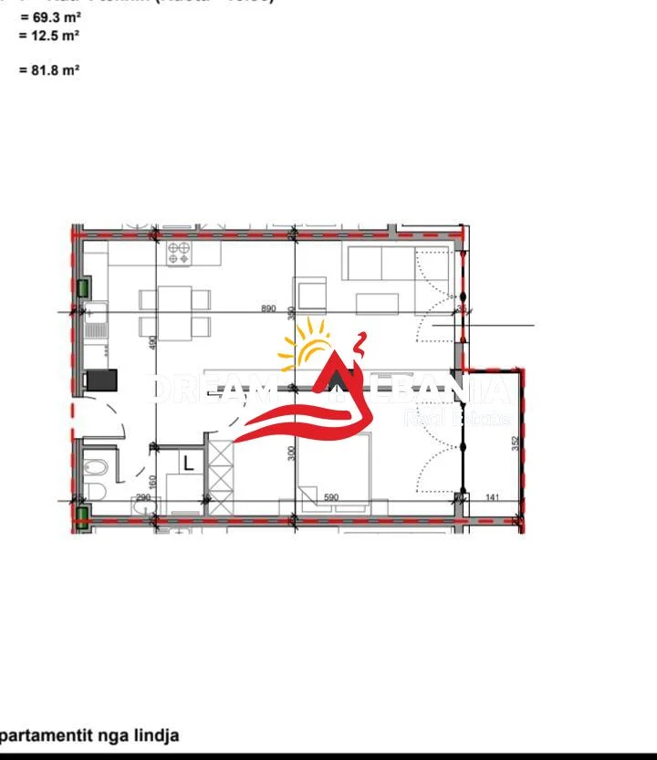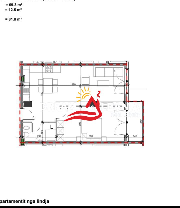 Siperfaqe totale: 81.8 m², siperfaqe neto 69.3 m².