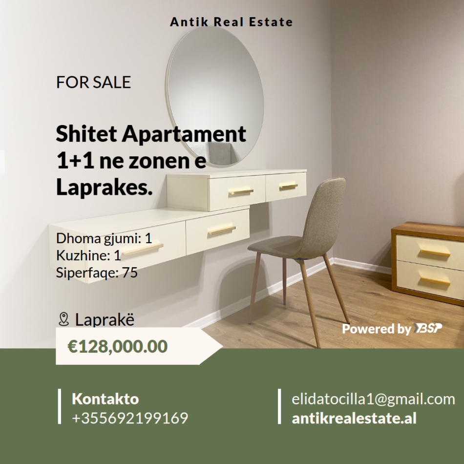 Shitet Apartament 1+1 ne zonen e Laprakes afer me njesine Administrative...
