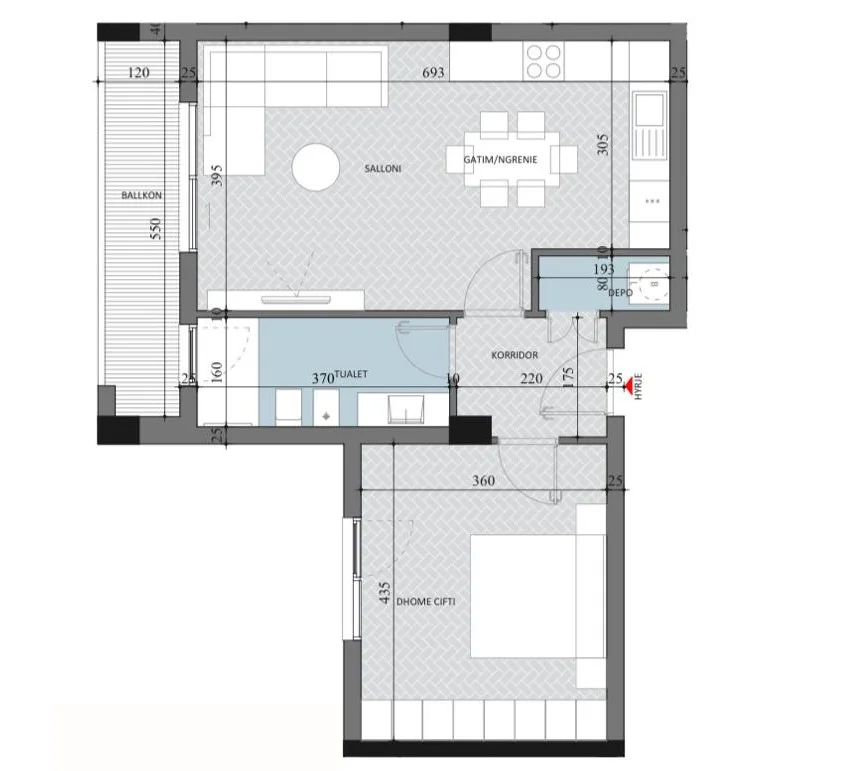 - 1 dhomë gjumi