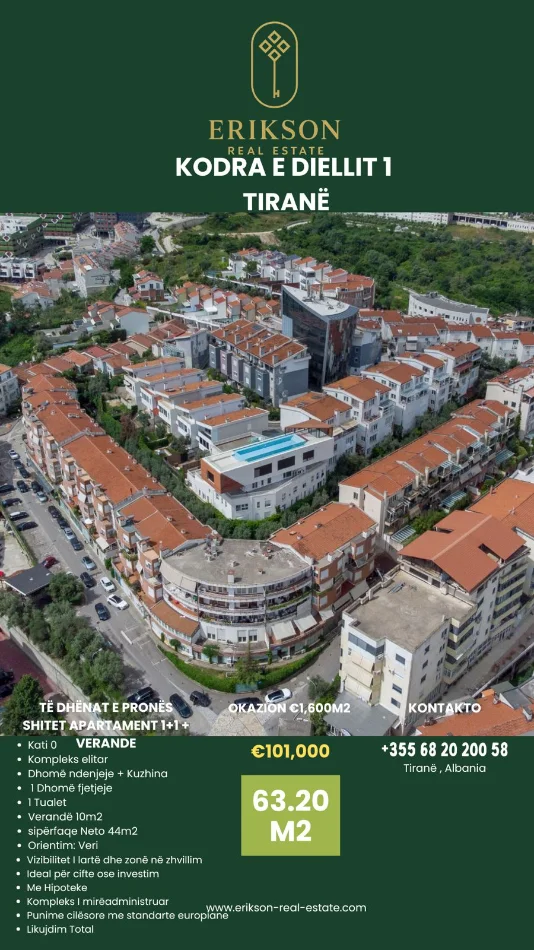 Tirane, shitet apartament 1+1+Ballkon Kati 0, 63 m² 101.000 € (Kodra e Diellit)
