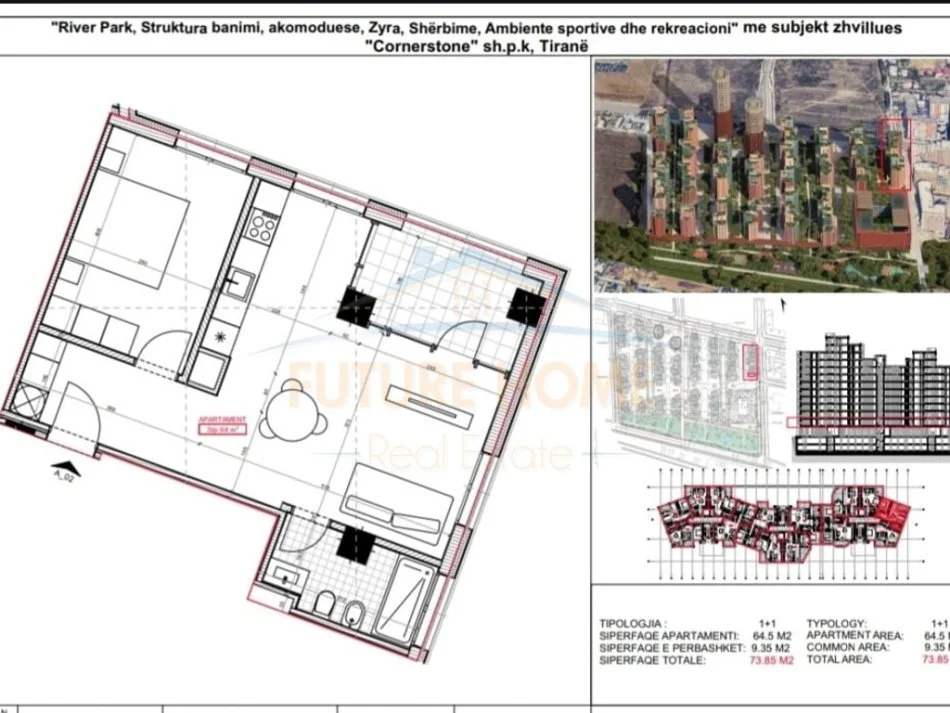 "River Park" Residence nuk është thjesht një kompleks banimi, por një destinacion i menduar për ata që kërkojnë një jetë më të mirë. I pozicionuar strategjikisht në Unazën e Re, ky projekt sjell një kombinim perfekt të arkitekturës moderne, hapësirave të gjelbra dhe lehtësive ekskluzive që krijojnë një komunitet të organizuar dhe të sigurt. Me çerdhe dhe kopshte për fëmijët, qendër tregtare, hapësira komerciale dhe fusha sportive për basketboll, tenis dhe volejboll, RiverPark ofron një standard të ri jetese.