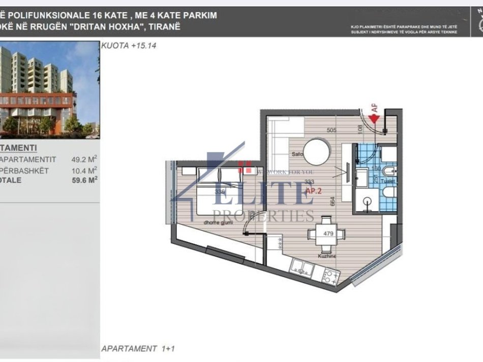 • Sipërfaqe bruto: 59.6 m²