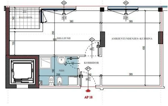 Apartamenti ka siperfaqe bruto 59.45m2 dhe siperfaqe neto 50.75m2.Organizohet ne ambient ndenje,kuzhine gatimi e ngrenie,1 dhome gjumi,1tualet dhe 1ballkon.Ndodhet ne katin e 3-te banim te nje pallati te pajisur me ashensor.
