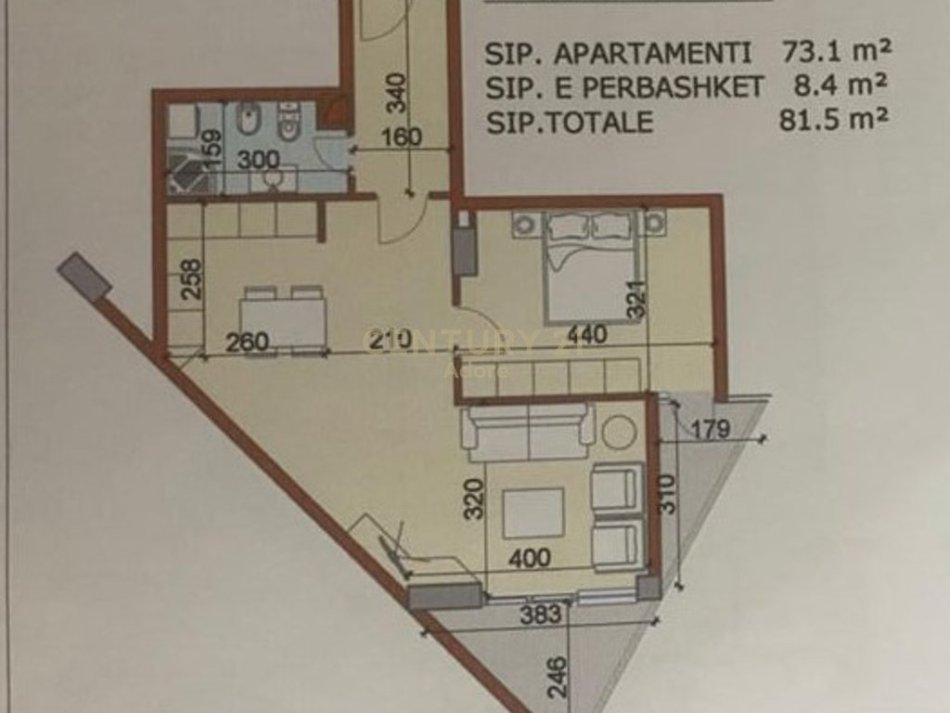 • 1 dhomë gjumi + 1 sallon me kuzhinë