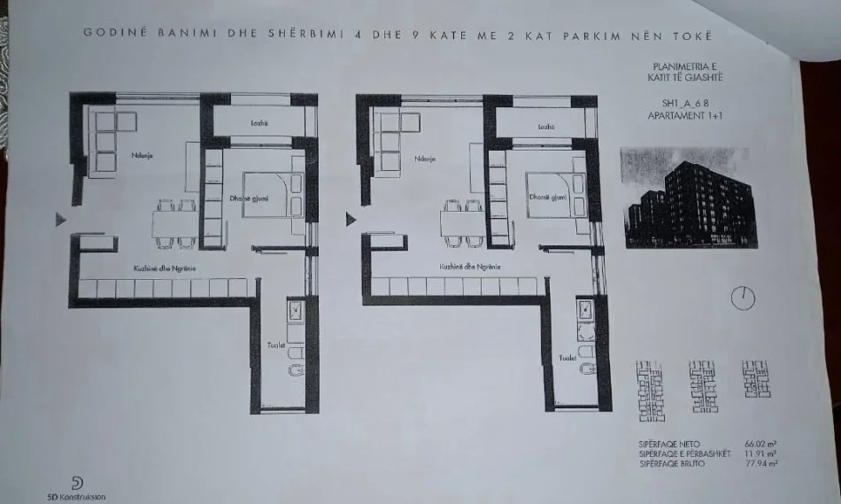 • Tirane, shitet apartament 1+1+Ballkon Kati 6, 78 m² 137.000 € (JORDAN MISJA)