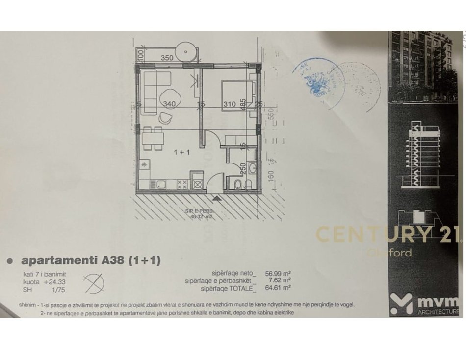 ° Siperfaqe totale: 64.61m².