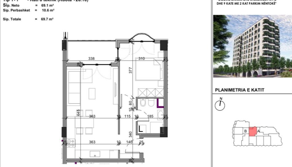 Tirane, shitet apartament 1+1+Ballkon Kati 8, 69 m² 83.640 € (PASKUQAN)
