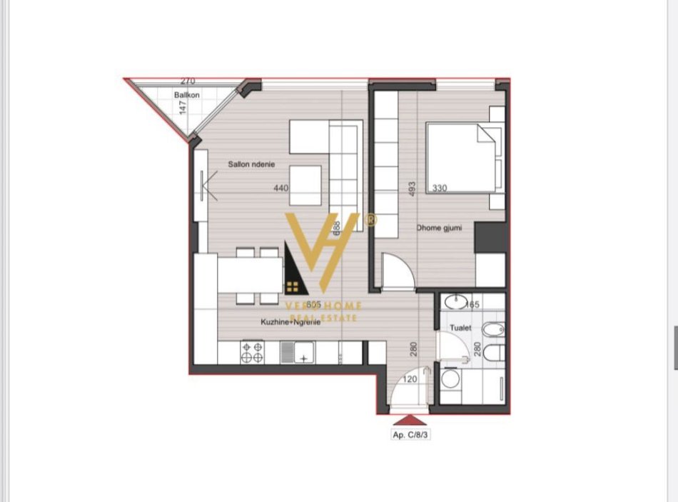 • Tirane, shitet apartament 1+1+Ballkon Kati 8, 83 m² 208.000 € (RRUGA MUHAMET GJOLLESHA)
