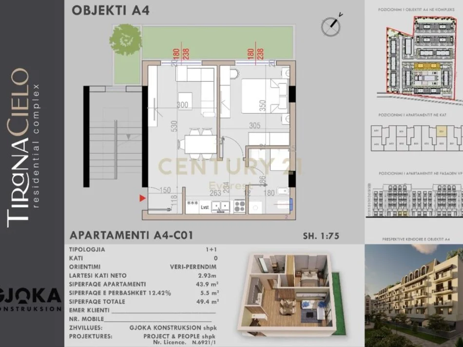Tirane, shitet apartament 1+1 Kati 0, 49 m² 89.000 € (TEG)