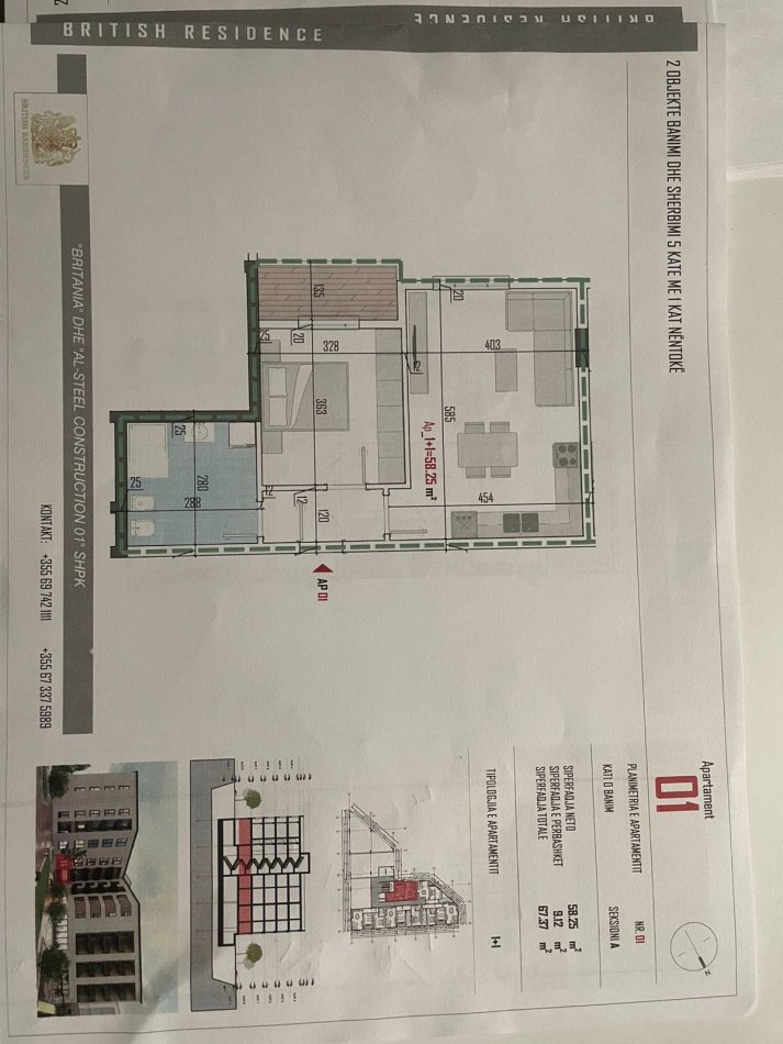 Tirane, shitet apartament 1+1 Kati 0, 67 m²