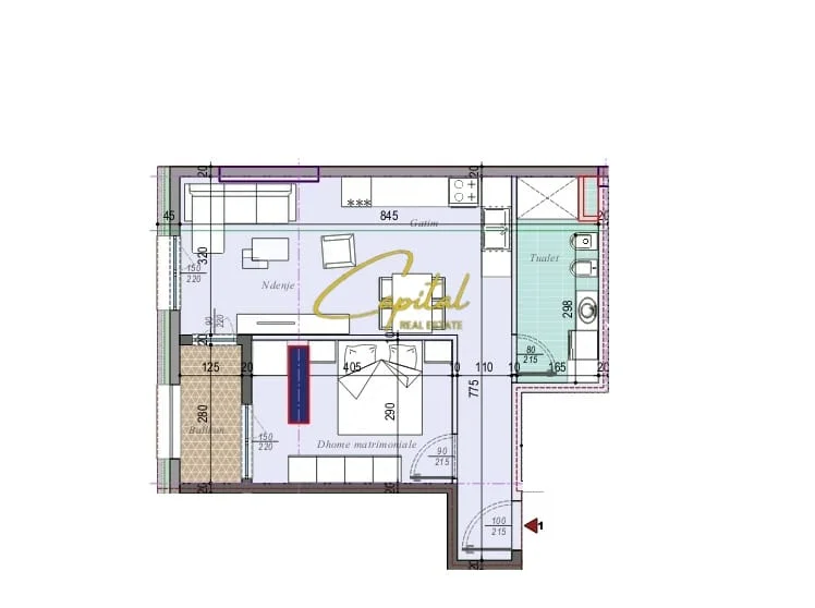 . Organizohet ne : 1 dhome gjumi, sallon, tualet, korridori shperndares, ballkon, kuzhine