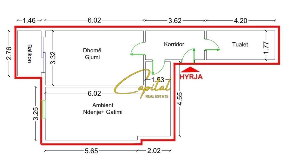 . Organizohet ne : 1 dhome gjumi, sallon, tualet, korridori shperndares, ballkon, kuzhine
