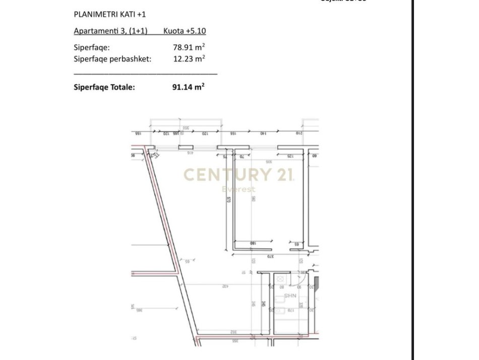 Apartamenti eshte i vendosur ne katin e 1 banim, me nje siperfaqe totale prej 91.14 m2.