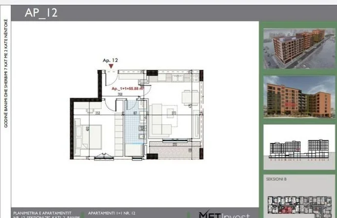 • Tirane, shitet apartament 1+1 Kati 2, 64 m² 76.000 € (Rruga Lidhja e Prizrenit, Paskuqan, Tirana 1047, Albania)