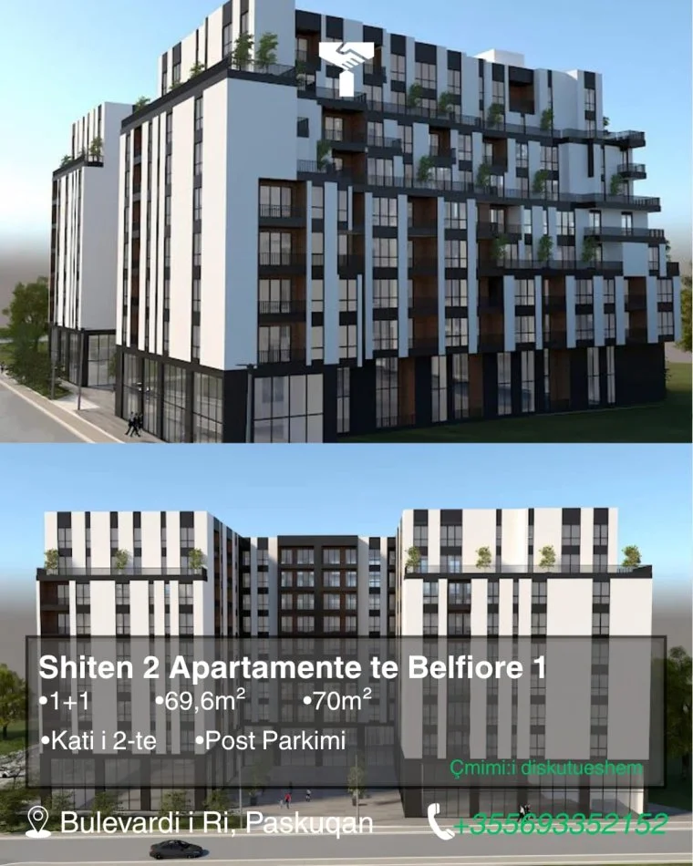 Shiten 2 Apartamente 1+1 dhe Post Parkim tek Belfiore 1, në Paskuqan.