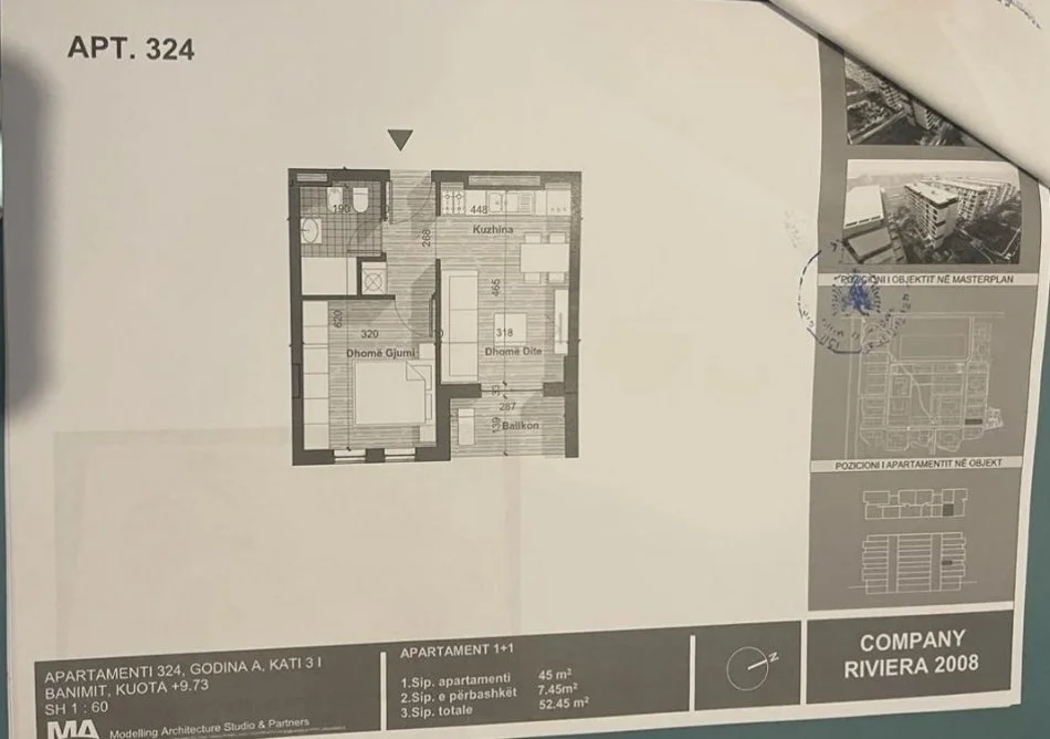 • Tirane, shitet apartament 1+1 Kati 3, 54 m² 67.000 €