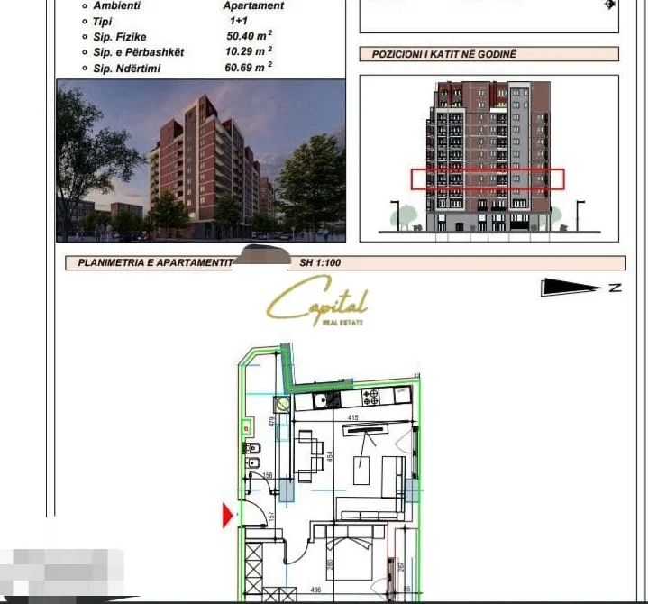 . Siperfaqe totale prej 61 m2 dhe siperfaqe neto 50.4m2
