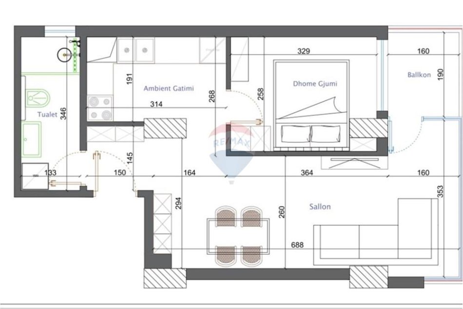 Tipologji: 1+1 (2 apartamente)