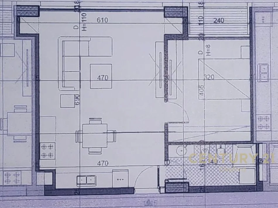 - Salloni së bashku me kuzhinën