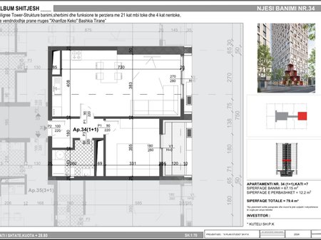 • Tirane, shitet apartament 1+1 Kati 7, 79 m² 15.800.000 €