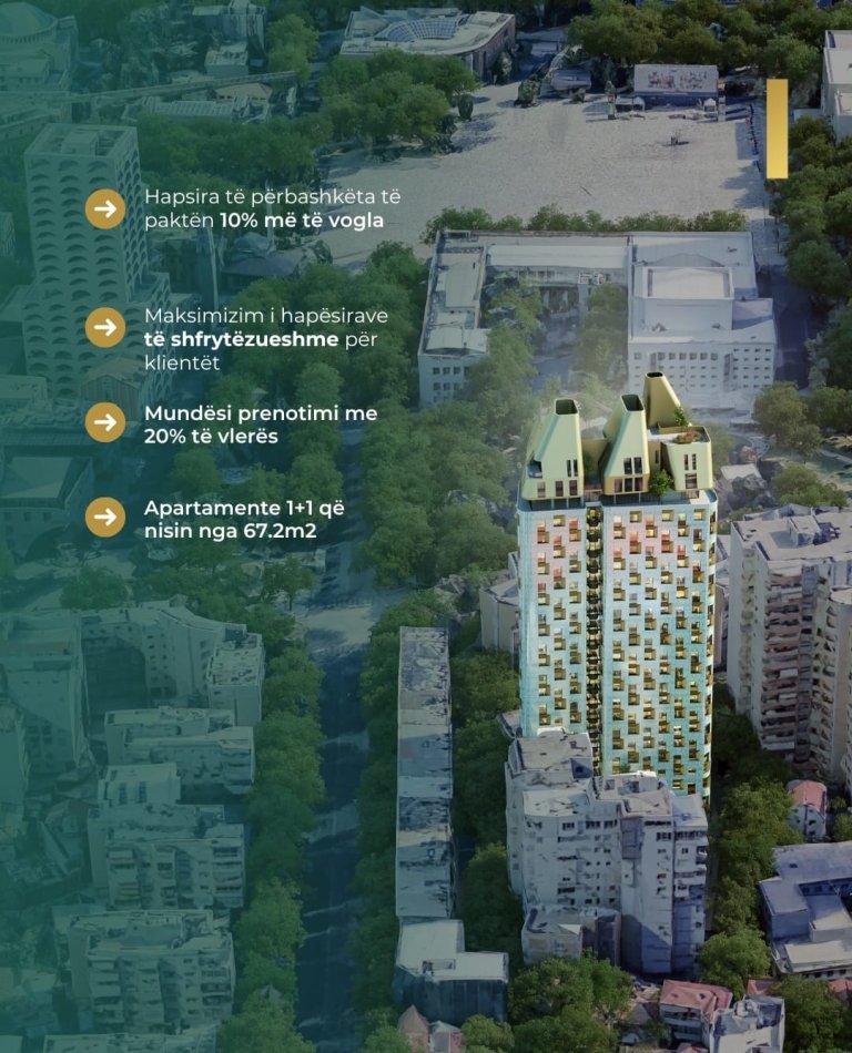 Apartamenti ndodhet ne katin e 8-te me drejtim Lindje - pamje nga Pazari i Ri.