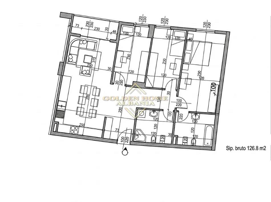 Okazion! Shitet apartament 3+1+2 tek Garden Residence Turdiu! Apartamenti ka siperfaqe 126.8m² dhe organizohet ne nje sallon te bollshem sebashku me ambientin e gatimit me dalje ne ballkon, tre dhoma gjumi ku matrimonialja disponon tualet me vete dhe nje tualet i perbashket. Garden Residence Turdiu është një kompleks banimi me 9 ndërtesa kryesore me 7, 8, 11 dhe 12 kate mbi tokë dhe kate parkimi nëntokë. Kompleksi ofron hapësira rekreative për banorët, një pishinë të përbashkët, një kënd lojrash për fëmijët dhe shumë shërbime e lehtësira për jetesë të qetë në komunitet. Pozicionuar në një zonë lehtësisht të aksesueshme nga Rruga e Durrësit dhe 21 Dhjetori, ky kompleks ndërtimi shtrihet me orientimin kryesor lindje-perëndim për të përfituar maksimalisht prej ndricimit natyral, ndaj jugut. Godinat e këtij projekti janë të pajisura me fasadë termike kapotë ose të ventiluar, sipas kateve të projektit. Këto fasada janë rezistente për klimën e Tiranës dhe plotësojnë standardet teknike të izolimit termiko-akustik për një jetesë të qetë dhe komode. Muret ndarës me korridorin dhe njësitë e tjera përbëhen prej dy mureve me trashësi 10cm me një shtresë të ndërmjetme pambuku mineral prej 5cm trashësi, me parametra termik dhe akustik të lartë. Vetrata termike janë prej alumini dhe dopio xham. Pajisjet hidro-mekanike janë inkaso (brenda murit) të markës GEBERIT. Cmimi 1700€/m². Per nje vizite ne prone kontaktoni 0697696562