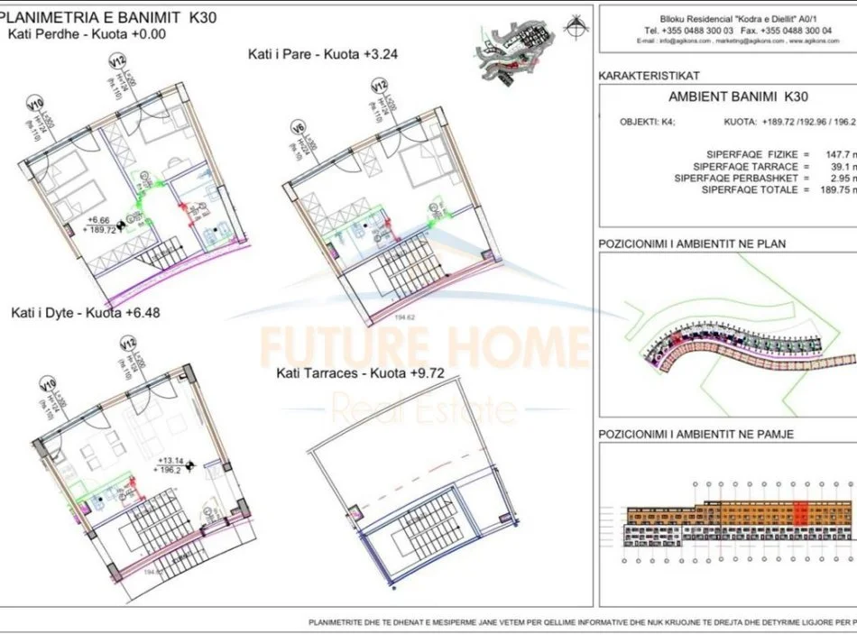 •Sipërfaqe totale : 189.75 m2