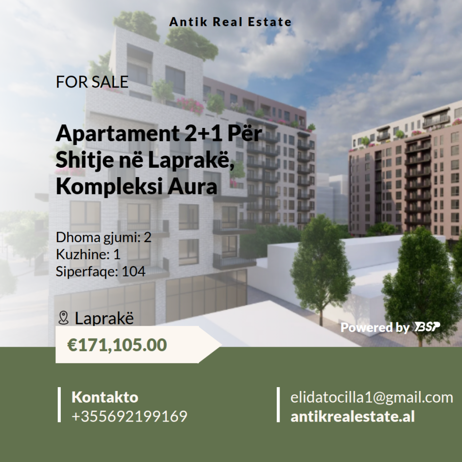 Apartament 2+1 Për Shitje në Laprakë, Kompleksi Aura!