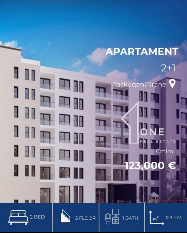 Tirane, shitet apartament 2+1 , 123 m² 123.000 €