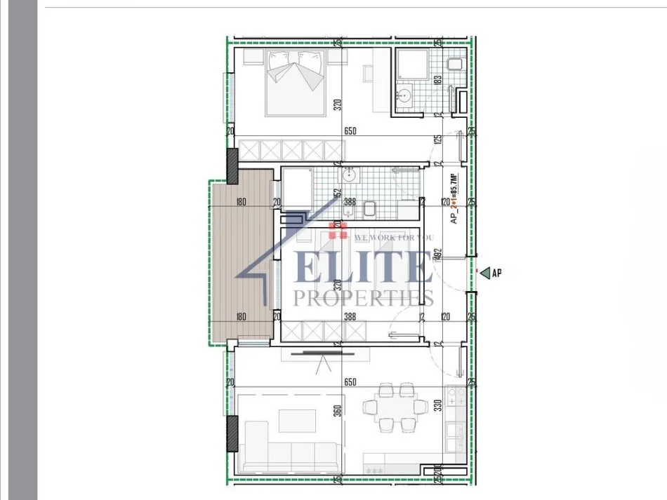 • Tipologji 2+1 (ambient ndenjie+gatimi, dy dhomagjumi, dy tualete, ballkon)