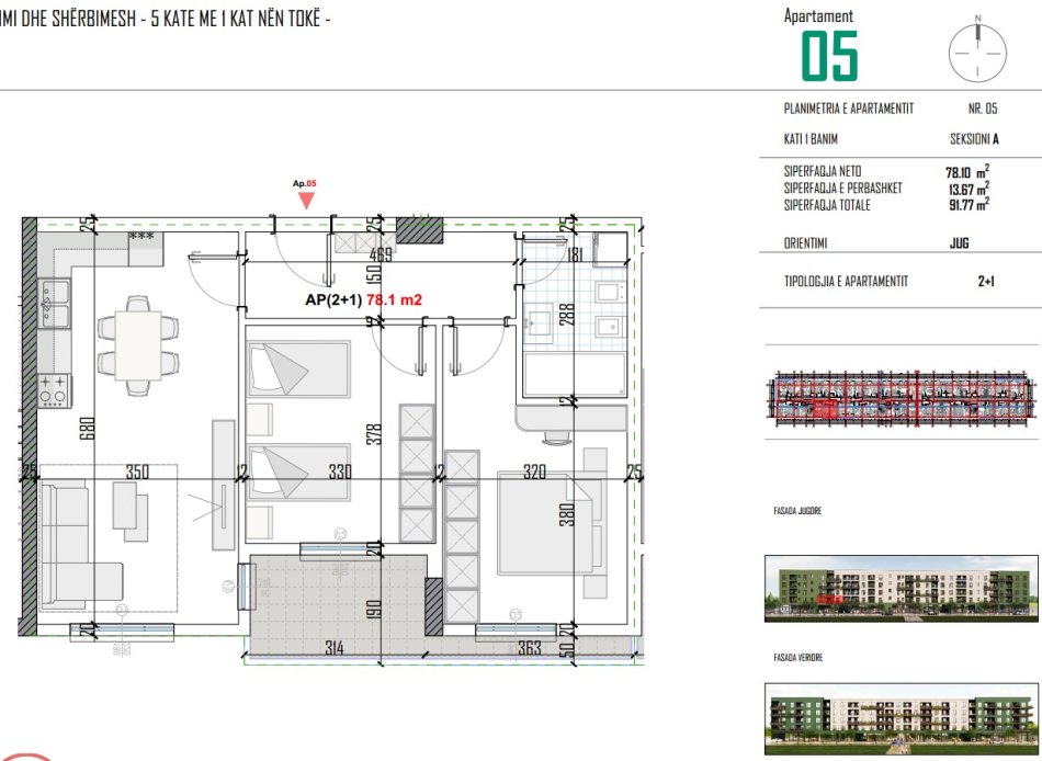 Ndertim 5 Katesh me 1 kat nentoke (1 Kat Sherbime dhe 4 Kate Banim)