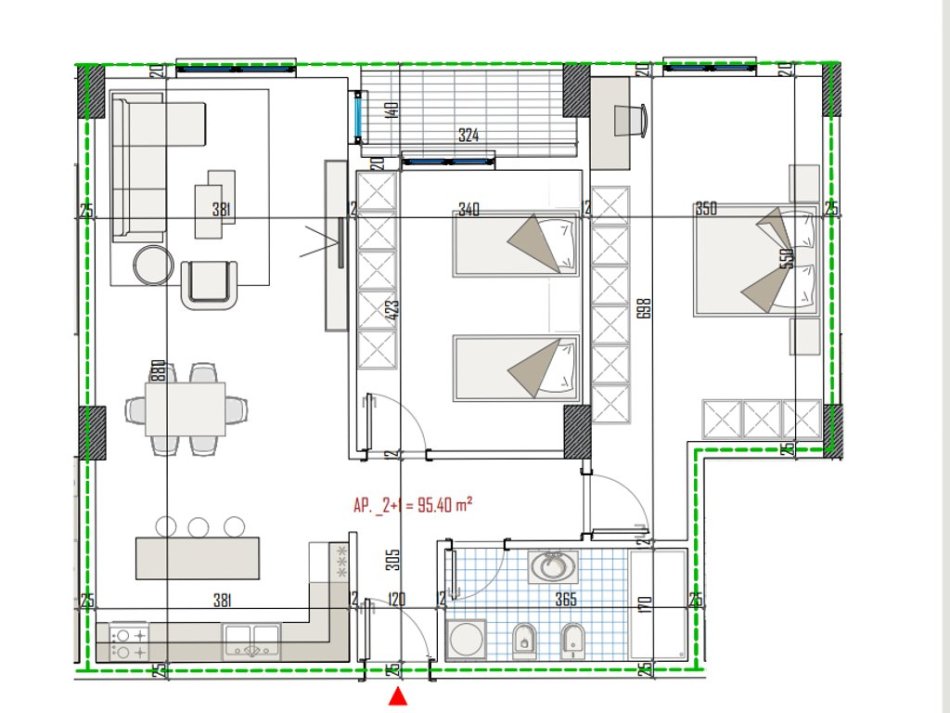 -Sipërfaqe banimi: 95.40m²