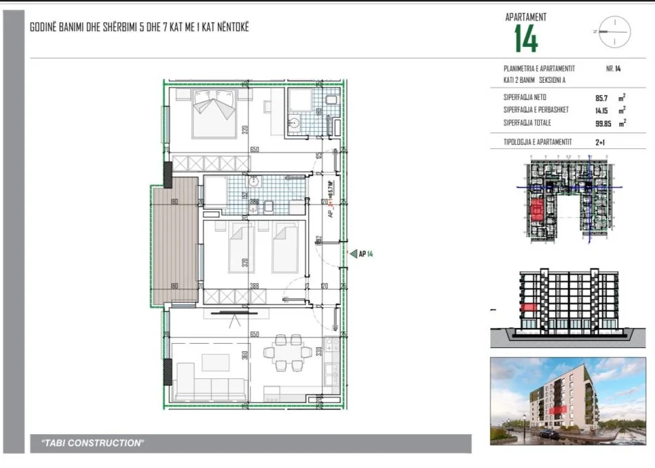 • Tirane, shitet apartament 2+1+Ballkon Kati 2, 99 m² (Tabi Construction)