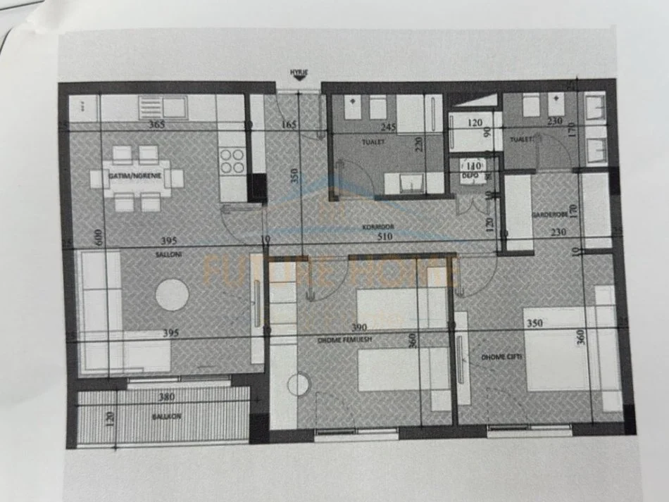 * Sipërfaqja e apartamentit (bruto): 104.9 m2.