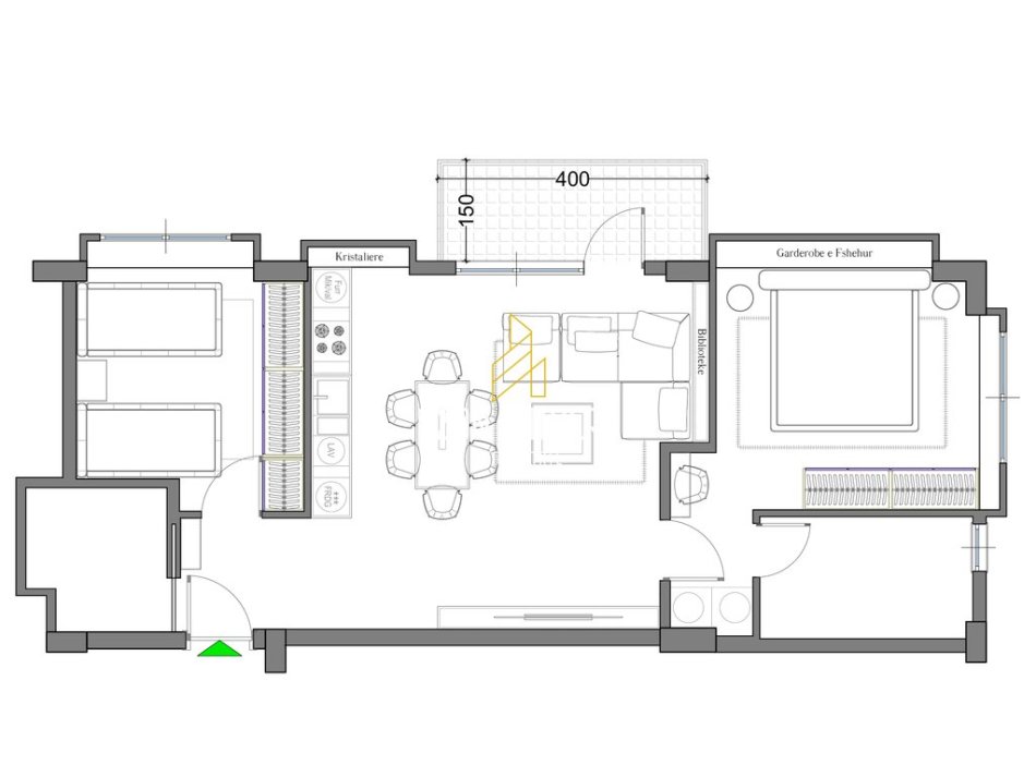 • Sallon ndenjeje me kuzhinë