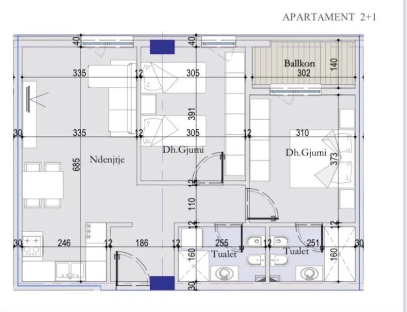 Tirane, shitet apartament 2+1+Ballkon Kati 3, 87 m² 122.000 € (Rruga 29 nentori)