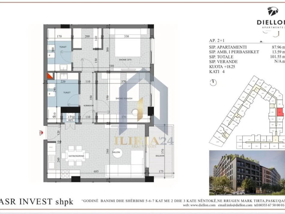• Tirane, shitet apartament 2+1+Ballkon Kati 4, 102 m² 96.472 € (Diellon Residence PASKUQAN)