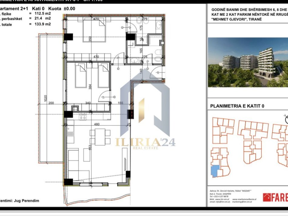 Apartamenti ka një sipërfaqe neto prej 112.5 m² dhe një sipërfaqe bruto prej 133.9 M²