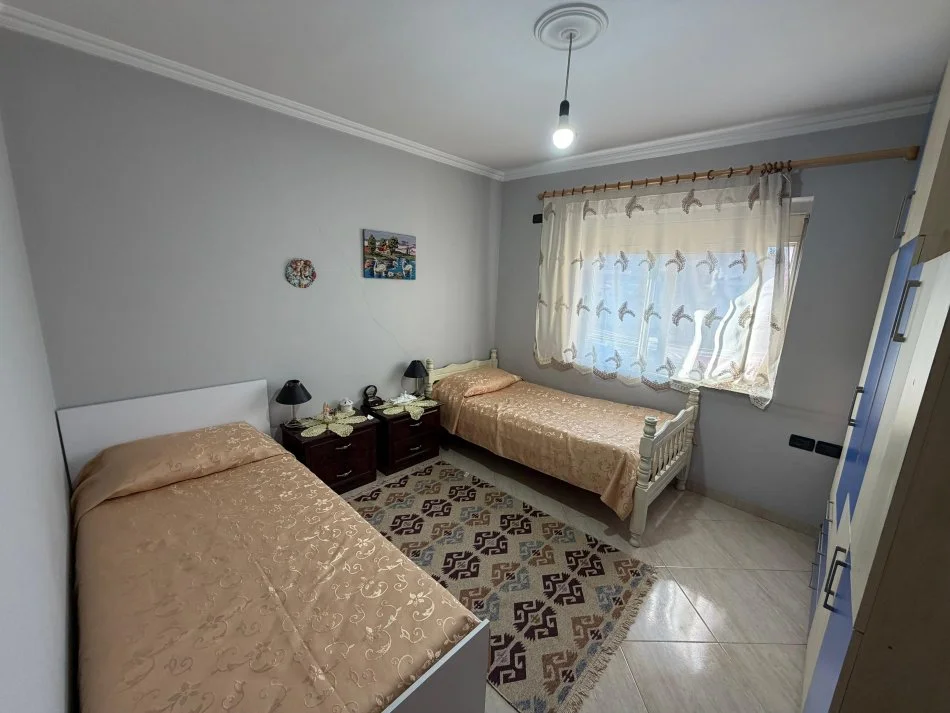 Apartamenti ka siperfaqe neto 59,5m²dhe organizohet ne ambient ngrenie e ndenje,2dhoma gjumi,1 ballkon dhe 1tualet.Ndodhet ne katin e 5-te te nje pallati ekzistues(pa ashensor) .