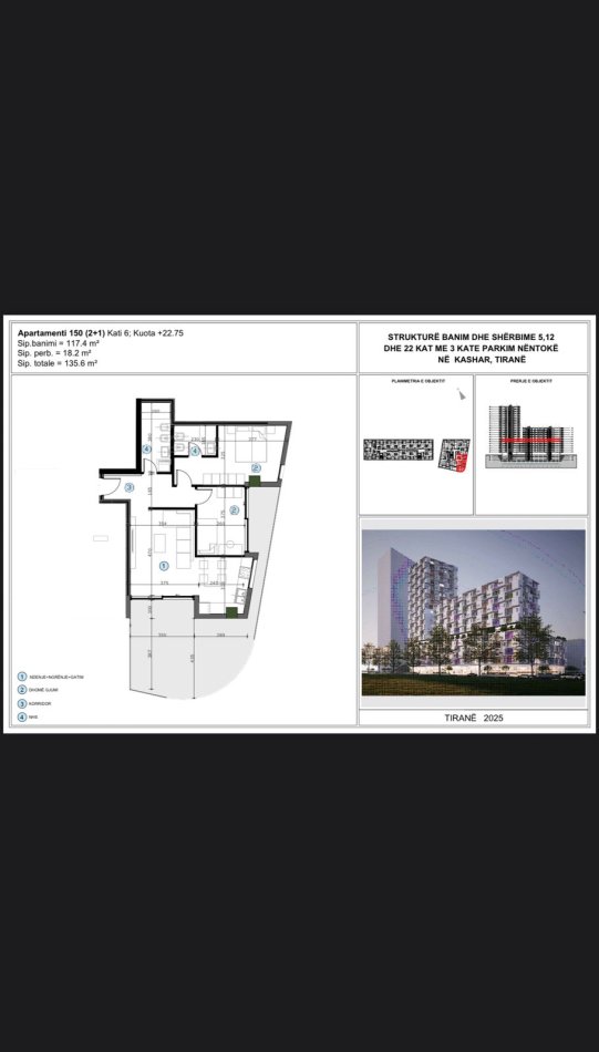 • Tirane, shitet apartament 2+1+Ballkon Kati 6, 135 m² 190.000 € (ASTIR)