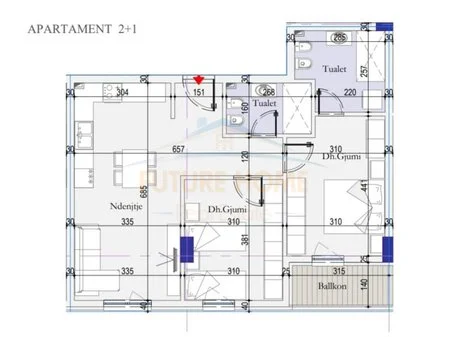 Informacion mbi apartamentin: • Kati 6 • Sipërfaqja bruto: 94 m2. • Sipërfaqja neto: 79.7 m2. Organizimi: • Ambient ndenje. • Ambient gatimi. • 2 Dhoma gjumi. • 2 Tualete • 1 Ballkon Cilësimet e tjera: • Faze ndertimi e avacuar • Aktualisht po mbaron sistemi kapote. • Orientimi: Jug-Lindje Objektet e propozuara ndodhen pergjate aksit te rruges "29 Nentori" prane mbikalimit tek qendra tregtare Casa Italia, Tirane.