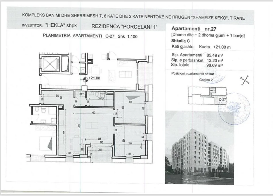 Okazion Shitet Apartament 1+1 dhe 2+1 tek Kompleksi Porcelan 1 Porcelan-Tv Klan Siperfaqe apartamentit 1+1 83m2 kati 6