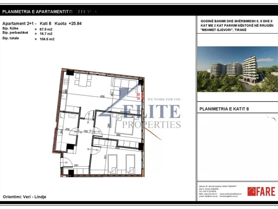 • Tirane, shitet apartament 2+1+Ballkon Kati 8, 104 m² 120.290 €